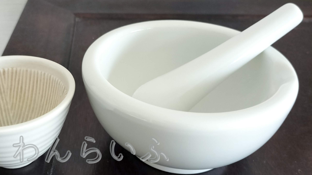 かかりつけの先生に勧められ、購入したのが乳鉢。錠剤だと飲ませにくいため、すりつぶして粉状にするために使いました。